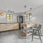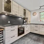 In einer Küchenzeile von dieser Villa in Blåvand gibt es einen Wasserkocher, einen Kühlschrank und einen Geschirrspüler.